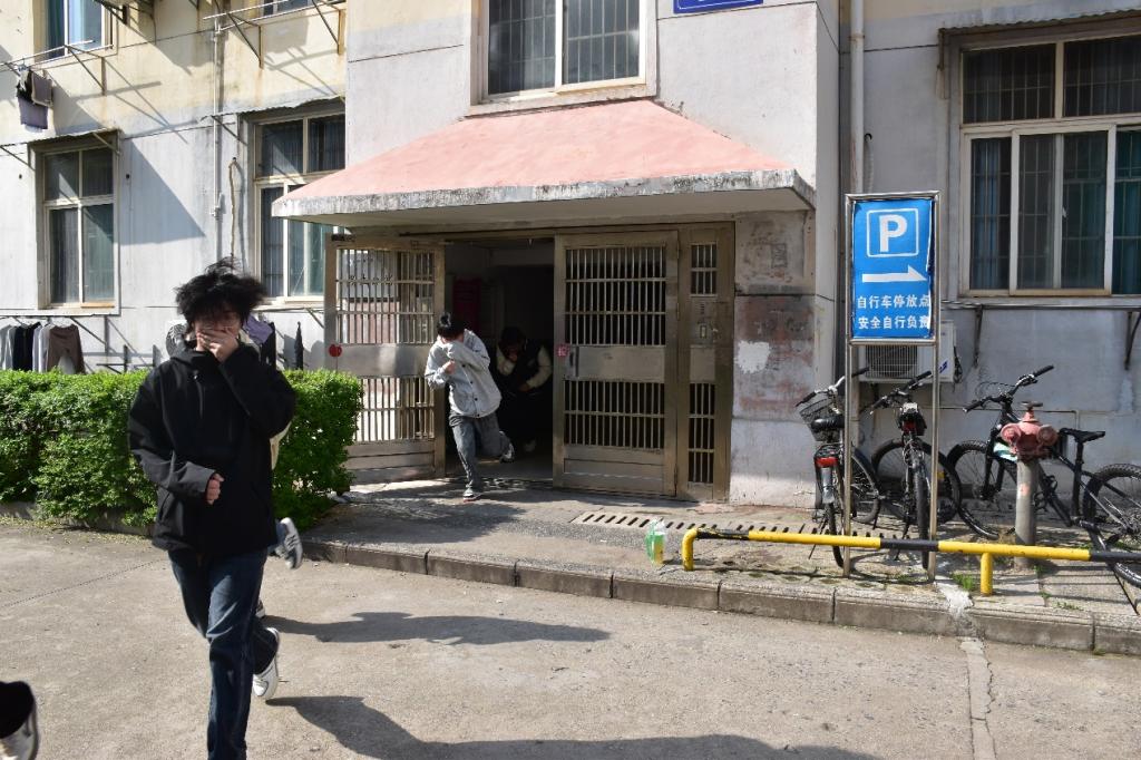 实操环节完毕后,宿舍火灾应急疏散演练正式启动。随着紧急消防警报声响起,同学们迅速反应,按照消防员提前讲解的逃生要领,弯腰捂鼻、低姿快速前行,严格沿着指定疏散路线,有序从宿舍撤离至校园空旷安全区域,整个逃生过程快速、规范、有序,无拥挤、无慌乱,充分展现了良好的应急逃生素养。