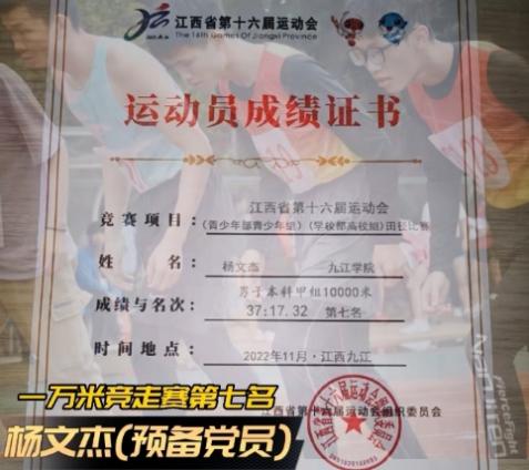 我院环境工程专业A2212班熊芷涵在省运会中获攀岩全能赛金牌、攀岩速度赛铜牌,环境工程专业A1931班杨文杰(预备党员)获一万米竞走赛第七名的好成绩。