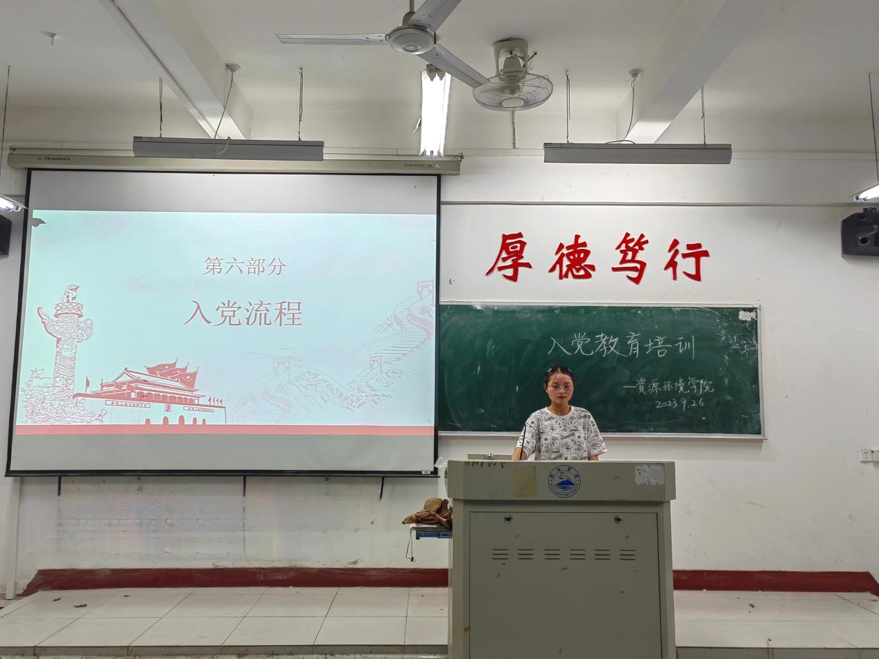为充分发挥党组织教育青年功能,进一步加大对青年的培养教育力度,培养高素质人才,更好的端正入党动机,清楚的认识了党的性质和宗旨,以及党的指导思想,yl88858永利中国学生党支部于9月26日晚在香远楼给2023级大一新生开展“入党流程教育培训”主题党日宣讲活动。