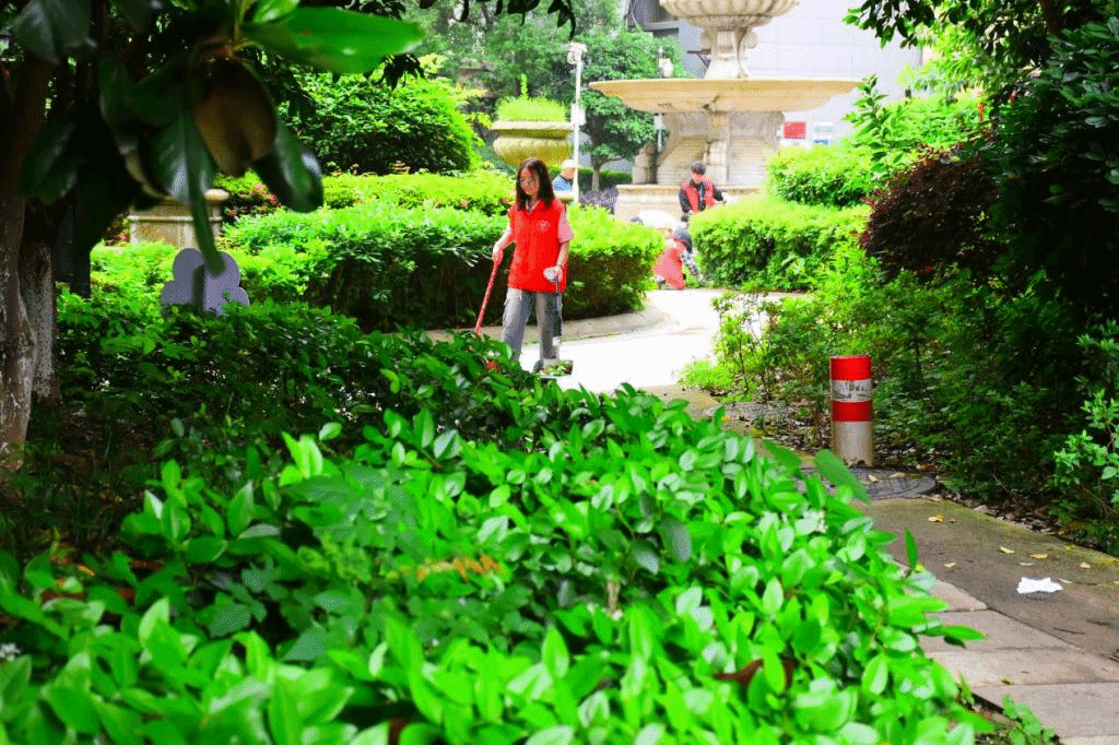 另一部分积极分子负责清扫小区,他们手拿扫把,认真地清扫小区每一处垃圾,在积极分子们的帮助下,小区的卫生环境情况得到了很大的改善。