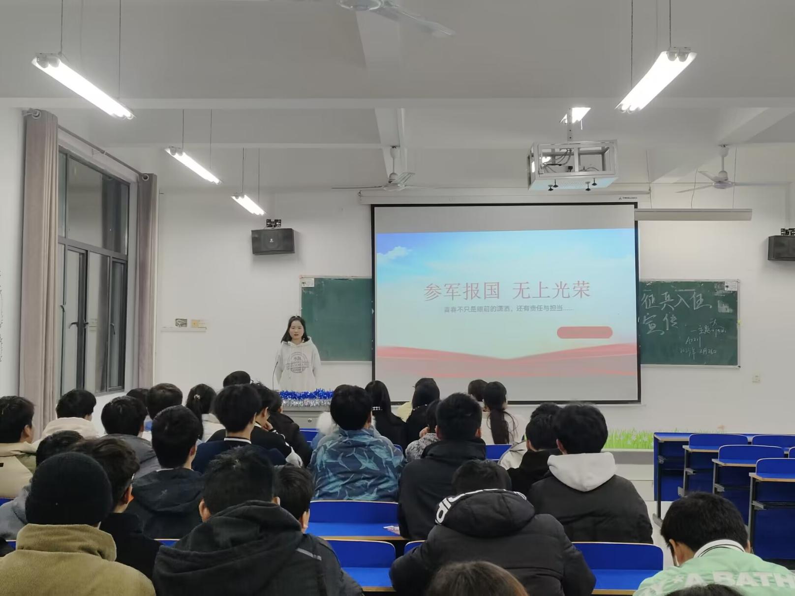 携笔从戎报国志,青春热血铸军魂。为了深入贯彻落实2023年全国大学生征兵工作会议精神,激发大学生参军报国的热情,2月26日,yl88858永利中国组织各班开展“携笔从戎绽放青春”征兵宣传主题班会活动。