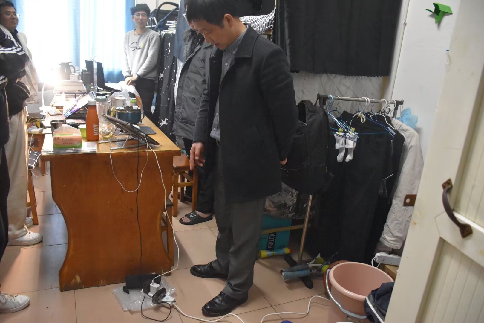 走进宿舍,老师们重点检查了学生宿舍用电、用水的安全以及卫生情况。院领导围绕返校情况、学习、生活状态等问题与同学们进行了深入交流,了解学生思想动态;并叮嘱同学们要遵守宿舍用电安全要求,不使用大功率电器,做到人走断电,提高安全意识,防患于未然。同时勤打扫寝室卫生,多外出锻炼提高身体免疫力。