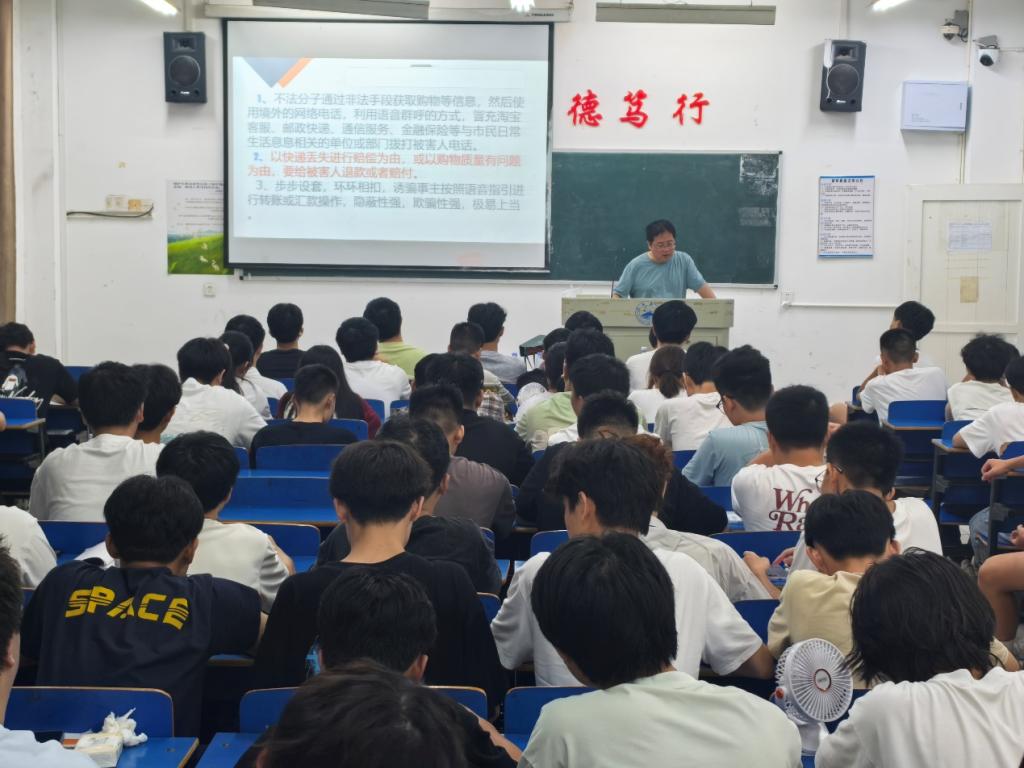 为切实提升学生识别和防范电信网络诈骗的能力,yl88858永利中国于近日组织大一各班级开展反诈骗专题课堂,由思政科科长肖国光、学生科科长过七根、学生科辅导员王勇和郑锋担任主讲,为学生带来一堂生动且实用的防骗知识课。