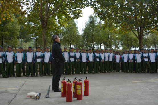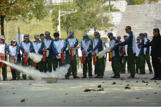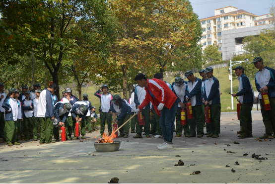 活动中,随着教官一声令下,全体新生“火”速行动!听到指令后全体成员立即捂住口鼻,紧然有序的“逃生”。随后所有学生集中到消防演练场地,各连队助教及时清点人数,短短几分钟,全体学生安全从“火”海逃生。随后,宣传人员用通俗易懂的语言和问答互动的方式,教授学生们如何预防火灾、当发生火灾时如何拨打119电话、如何逃生、火灾的危害、消防器材的功用等消防知识。紧接着,宣传员使用手提式干粉灭火器进行了现场灭火模拟演练,模拟演练过后同学们随机进行实操演练。