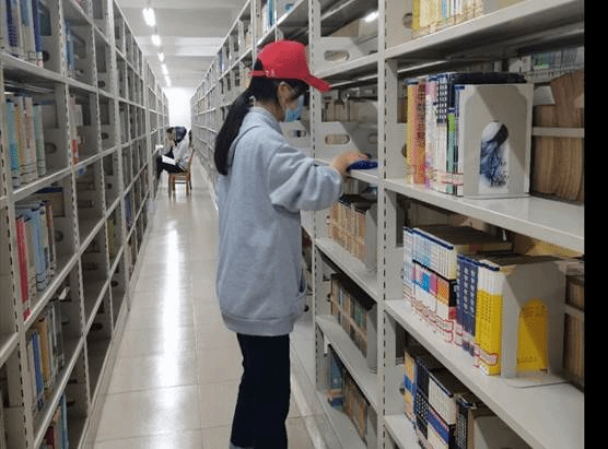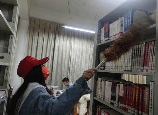 资环学院的志愿者们在这里整理图书,规范读者秩序的同时也感受到图书馆的浓厚学习氛围。你会看到志愿者们忙碌的身影:为了图书能够被顺利传阅,他们将杂乱的书籍整理归位;为了给读者们一个整洁干净的环境,他们将积灰的书架进行打扫;为了让大家能够安静的学习,他们将温馨的宣传标语放在醒目的地方……在短短的两个小时活动中,大家都为那些目标努力着,坚守着自己的岗位,踏踏实实的践行着:志愿在行动!