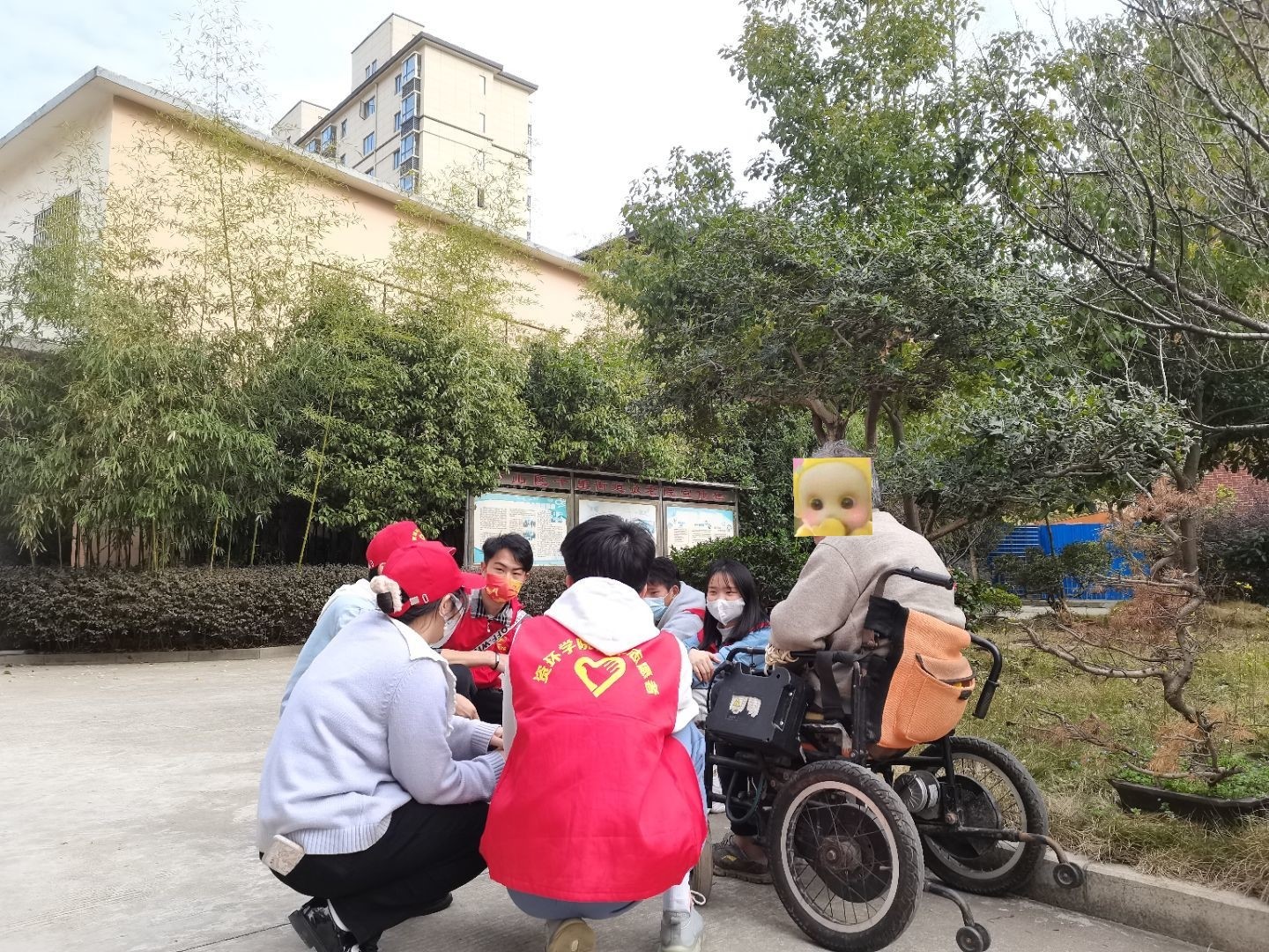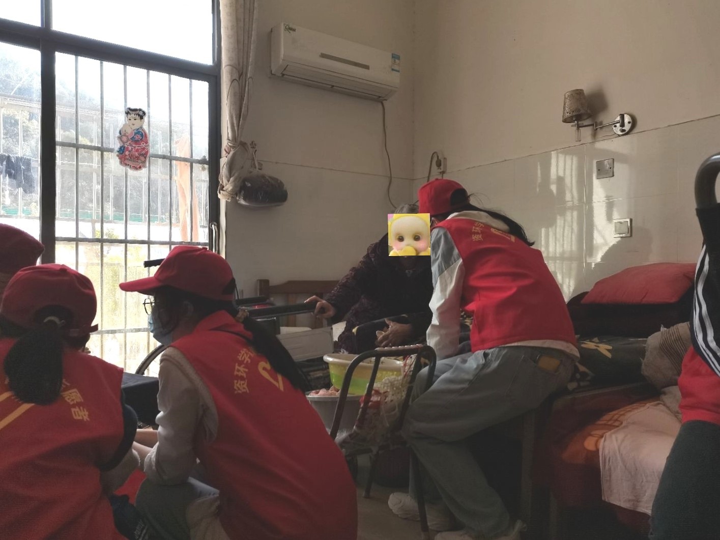活动过程中,我院学子身穿红马甲、头戴小红帽,化身小雷锋。同学们把老人当成自己的亲人,围绕在老人身旁陪他们聊天,仔细询问他们的身体状况,关心他们的日常生活起居;虽然有的老人年事已高,听力不好,交流起来有些困难,同学们仍耐心的倾听老人说话,并为老人表演精心准备的节目;部分同学帮助打扫房间卫生、认真修整电风扇……