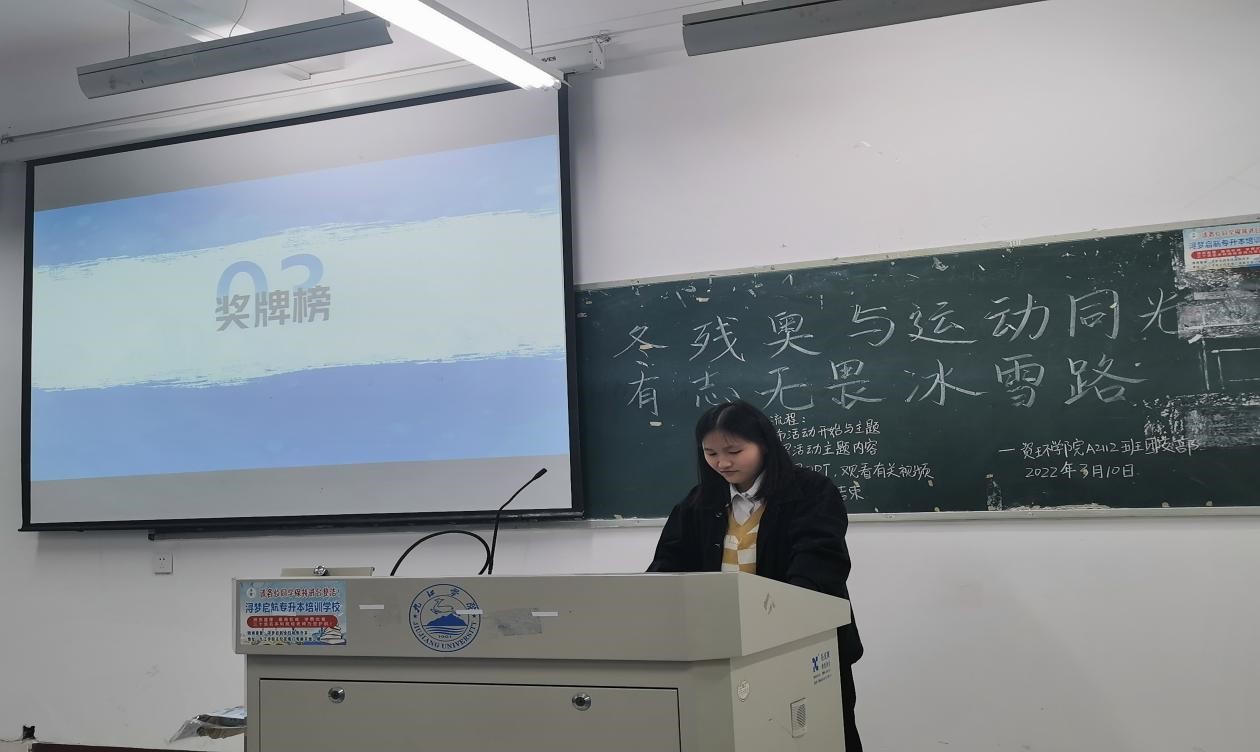 团日活动上各主讲人围绕本届冬残奥会,为大家讲解了冬残奥会的相关知识与奥运精神,并结合相关视频加深同学们的印象。
