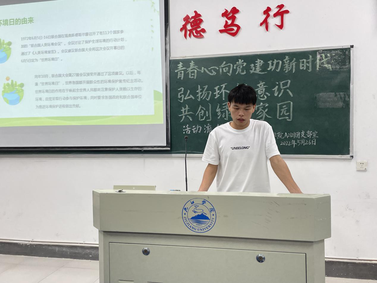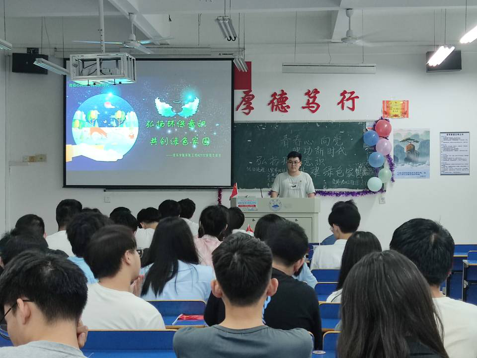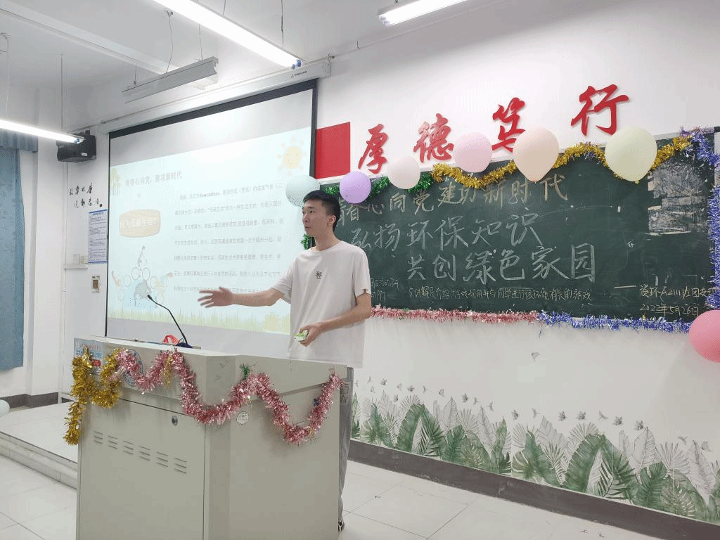 在热烈的掌声过后,各主讲人从地球现阶段存在的环境问题开始引入,期间讲述了许多生活中肉眼可见的环境问题和改善方式以达到宣传环保理念的目的,发挥环境在育人环节的重要作用。同时响应创建学院“两山”思政品牌,通过系统且细致的讲述将习近平生态文明思想融入到同学们的思想中去,引领同学在爱党爱国爱社会主义的同时爱清洁美丽的生活环境。此后,结合相关视频加深同学们的印象。视频结束,同学们轮番起立表达自己观后的思考与体会。晚上8时,活动在一片掌声中顺利落下帷幕。