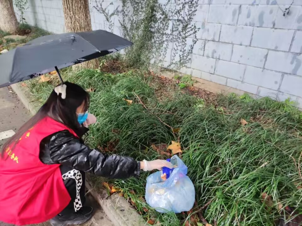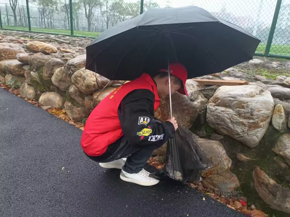 活动前期负责人把志愿者分为6组,在学校区域进行垃圾拾捡。活动过程中,可以在学校的各个地方看见志愿者的身影,他们不惧寒冷的天气,用自己的行动来诠释什么是奉献精神。