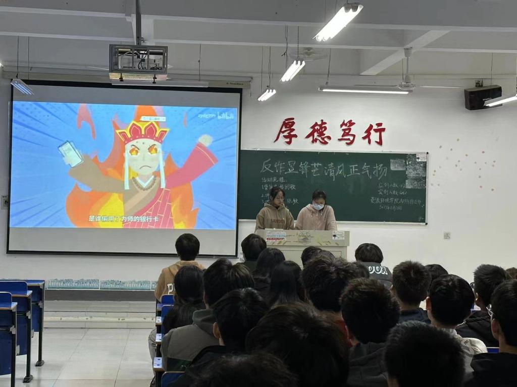 一曲团歌拉开活动的帷幕。活动中,各班主讲人与同学们共同分析相关案例,就案例中的现象积极发表自己的看法,通过问答方式,让同学们了解了这些典型案件中的诈骗方式以及基本处理手段。在不断发展的新时代,科技水平的提高使得不法分子有了更多的可乘之机,新式诈骗手段层出不穷。针对大学生实际生活,各班观看官方视频的介绍,了解了防范虚假信息诈骗的相关知识及防范对策,提高了同学们对诈骗集团诈骗手段的认识。