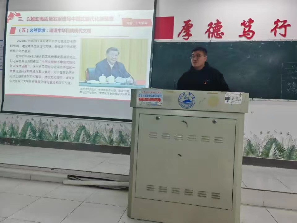 在理论学习环节,全体学员通过PPT讲解,从深刻认识中国式现代化的重大意义;准确把握中国式现代化的中国特色和本质要求;以推动高质量发展谱写中国式现代化新篇章三个方面深入学习贯彻党的二十大精神。全体成员在问答环节,积极讨论,踊跃上台与大家分享自己的观点,更加深刻地理解党的二十大精神内涵所在、意向所指。