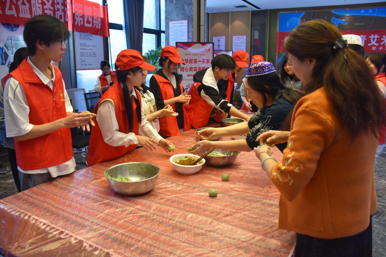 在社区工作者的带领下,志愿者们开始协助制作艾米果。“捣艾草为汁,和粉做团,色如碧玉”,把悠悠艾香揉进面团里。大家将面团分成小块,用手掌压成薄饼状或捏成碗状,然后包入花生、芝麻、白糖等馅料,轻轻捏、慢慢揉,做成一个个扁的、圆的、椭圆的、尖嘴的、花瓣型的......同学们想象力无限,做出了各种各样形状的艾米果。活动现场气氛热烈,欢声笑语,其乐融融。大家在轻松愉快的氛围里感受中华传统节日和传统美食的魅力。