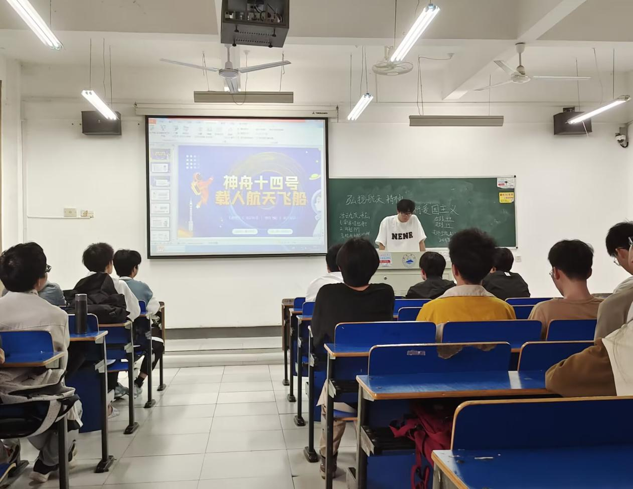 主题团日活动中,团员代表带领各团员青年以“弘扬航天精神,践行爱国主义”为主题进行交流学习,团员青年认真听讲、观看宣传视频。
