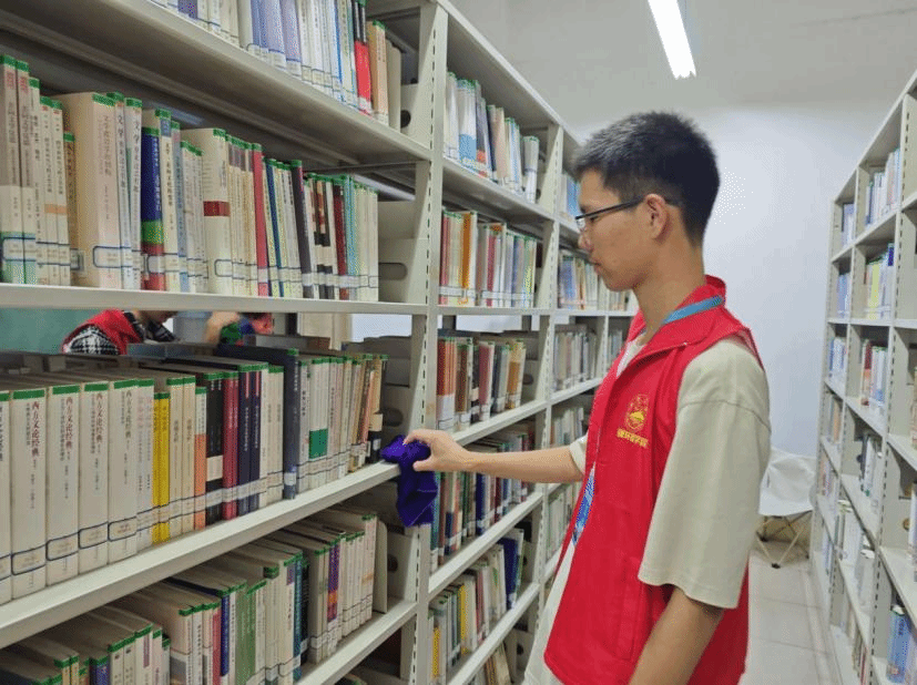 在这个美好的日子里,志愿者们早早地来到了图书馆,他们身着统一的服装,精神饱满,准备为读者们提供优质的服务。志愿者们的工作内容丰富多样。他们有的在整理书架,将杂乱的书籍按照分类摆放整齐,为读者们创造了一个整洁有序的阅读环境。此外,志愿者们还积极参与了图书馆的清洁工作。他们擦拭书架、打扫地面,不放过任何一个角落,让图书馆焕然一新。他们的辛勤付出,为读者们提供了一个干净舒适的阅读空间。一本本书在他们的手中仿佛有了生命,找到了自己的“家”。有的志愿者则在协助读者查找书籍,耐心地解答读者的各种问题。他们热情的服务态度和专业的知识,让读者们倍感温暖和贴心。