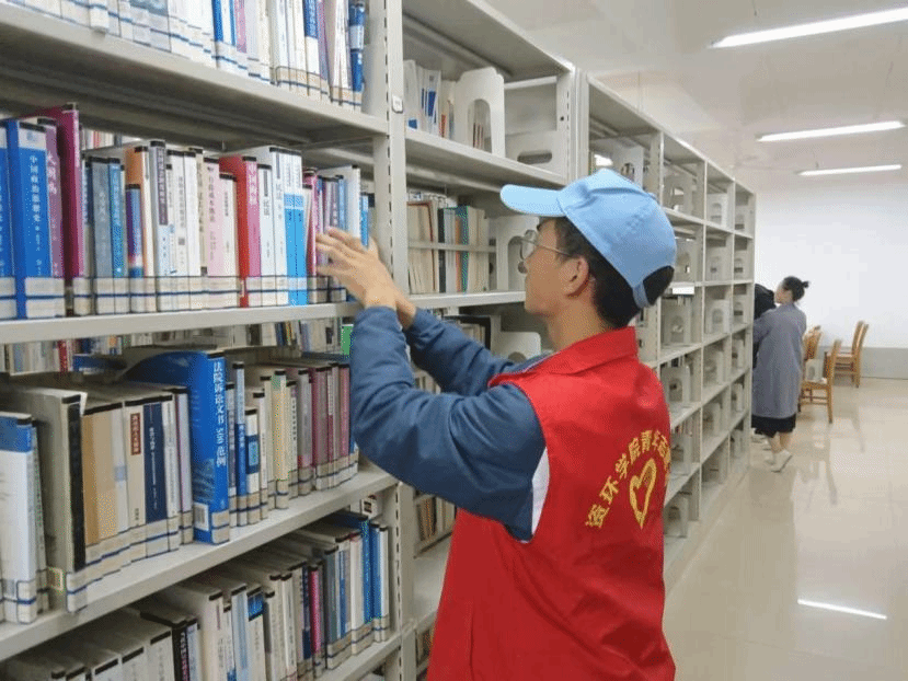 在本次图书馆志愿活动中,志愿者们分工明确,有的用小推车将书籍搬运到指定位置;有的仔细地将归还的书籍按编号分类依次摆放到书架上,一本本书籍通过志愿者们的付出回到了它们的‘家’;还有的志愿者他们排成一排,一个接一个传递书籍到指定位置。通过志愿者们的辛苦工作,图书馆更加整洁有序,图书馆工作人员也可以更高效地进行管理。