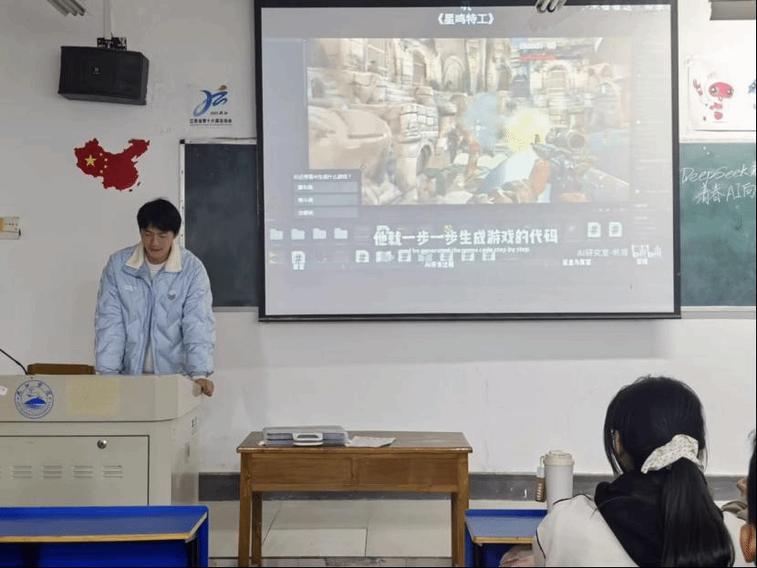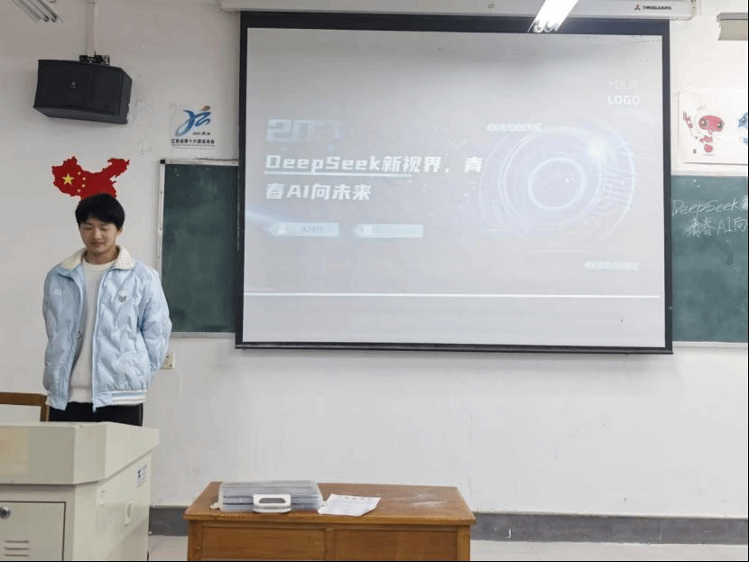 在齐唱团歌结束过后,团日活动准时开始。各班团支书和组织委员组织各班开展“Deep Seek新视界,青春AI向未来”团日活动,主讲人通过讲述Deep seek技术的发展历程、当前应用及未来趋势,使同学们感受到了科技魅力。同时,Deep Seek团队的创新精神与成就,也激励了同学们树立勇于创新、敢于突破的价值观,增强民族自豪感和文化自信,思考自身在科技浪潮中的责任与使命。