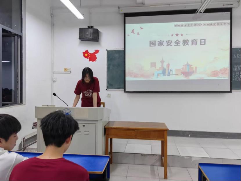 在齐唱团歌结束过后,团日活动准时开始。各班团支书和组织委员组织各班开展“系紧国安纽扣,绽放青春光彩”团日活动,主讲人围绕国家安全日的由来和如何维护国家安全展开叙述,帮助青年们实现从“了解安全”到“维护安全”的转变,让青年学生在掌握技能的同时,深刻理解“安不忘危”的道理,成为国家安全的坚定守护者和新时代的责任担当者。