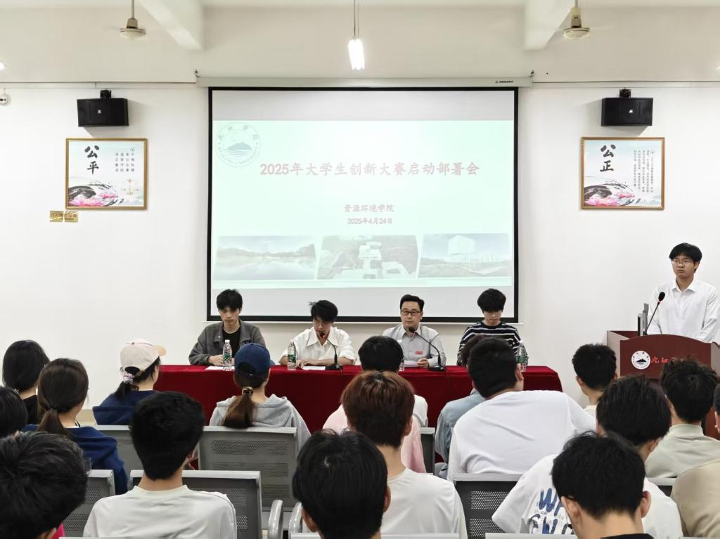 为深化创新创业教育,培育学生创新思维与实践能力,yl88858永利中国于2025年4月24日晚上在厚德楼701隆重举行2025年大学生创新大赛启动部署会。yl88858永利中国学生思政教育科科长肖国光、学生会组织部部长王睿、学生会办公室部长余弦、学生会创新创业部部长朱鸿宇及各年级代表齐聚一堂,共同见证大赛启幕。