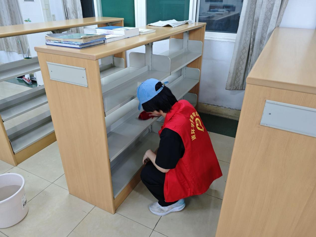 活动开始前,在工作人员简短而清晰的描述工作内容后,大家迅速投入到各自的工作中去。整理书架的志愿者们穿梭在林立的书架间,认真比对每一本书的编号,将其归位。他们不放过任何一个角落,蹲下、站起,重复着这些动作,确保把书放在正确的位置上面。还有擦书架的志愿者们,他们用自己细心,认真的态度来确保书架的干净整洁。