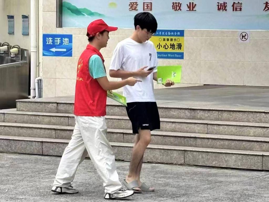 志愿者们化身为“环保讲师”,结合宣传手册向来往的同学深入浅出的讲解“碳中和”、“碳足迹”等相关理念,以及个人在日常生活中如何通过节约用电、资源重复利用、精准垃圾分类等具体活动为减碳贡献力量。志愿者们将复杂的科学知识转化为通俗易懂的生活语言,实现了知识的有效传递和转化。