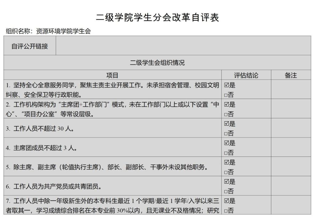 根据上级文件指示,对学生会工作进行规范和改革。严格落实“学生代表大会制度”,组织架构上对部门数量进行整合,对学院主席团和学生会人数及身份进行了严格规范及审查,对学生会工作进行“去中心化”和“去行政化”改革。