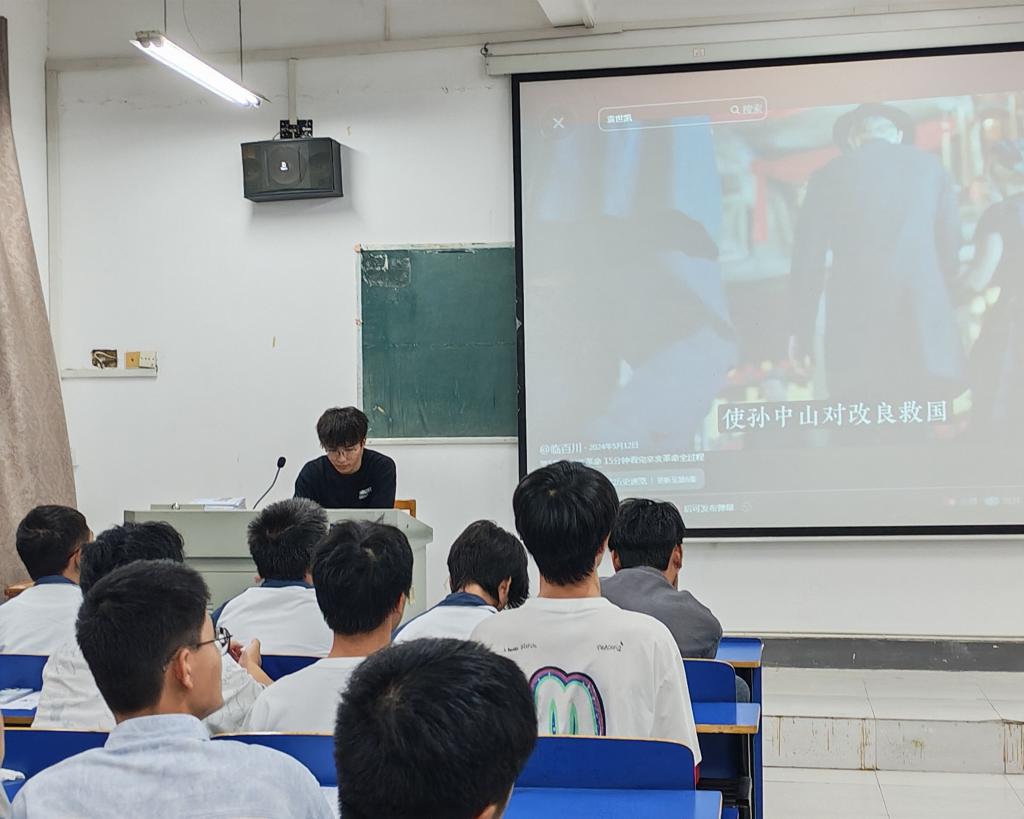 齐唱团歌过后,团日活动准时开始。各班团支书和组织委员组织各班开展“承辛亥薪火,筑青春担当”团日活动,主讲人围绕“辛亥革命的精神与当代青年的奋斗”作专题分享,结合历史案例阐释“青年应以辛亥精神中的家国情怀和奋斗底色写好人生故事”,引导团员们从历史中汲取辛亥革命的精神力量。