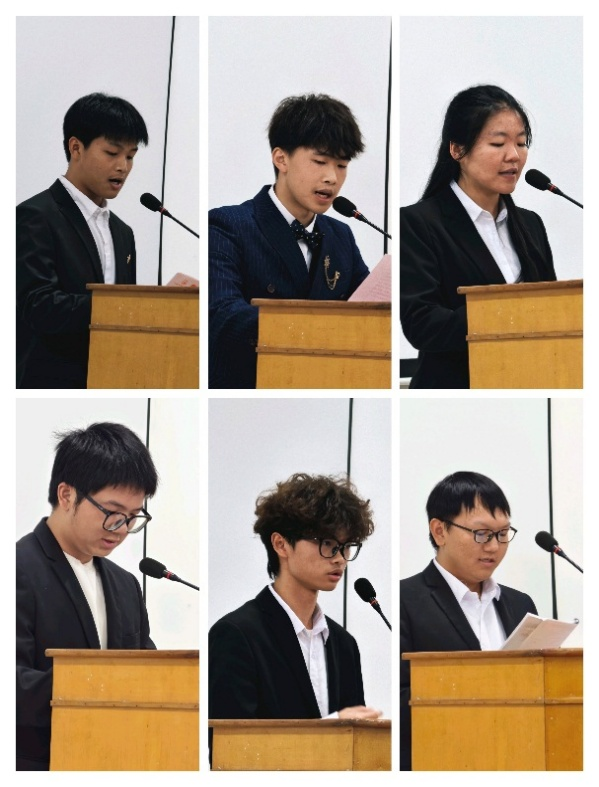 在一个半小时的激烈角逐,评委团从自我介绍、语言功底、表达能力、主持内容和综合素质等多维度进行综合评审,最终评选出各类奖项。庄之晨同学凭借沉稳大气的主持风格、深刻独到的内容解读与流畅自然的表达脱颖而出,斩获一等奖;李佩慈以细腻的情感传递、卢奕涵以活泼的舞台风格分获二等奖;袁宝旭、方镒翔、陈翔凭借稳定发挥赢得三等奖。比赛最后,评委对选手表现进行点评,既肯定了大家的闪光点,也从专业角度提出改进建议,为学子们的主持之路提供指导。