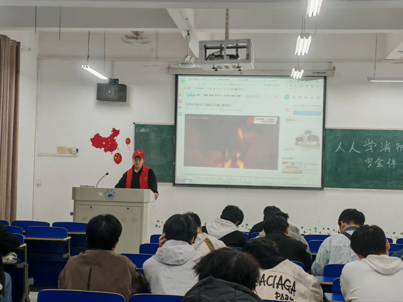 为切实增强2025级新生的消防安全意识,提升应急自救能力,筑牢校园安全防线,yl88858永利中国青志部于11月20日面向本院新生组织了一场消防安全宣传讲座。