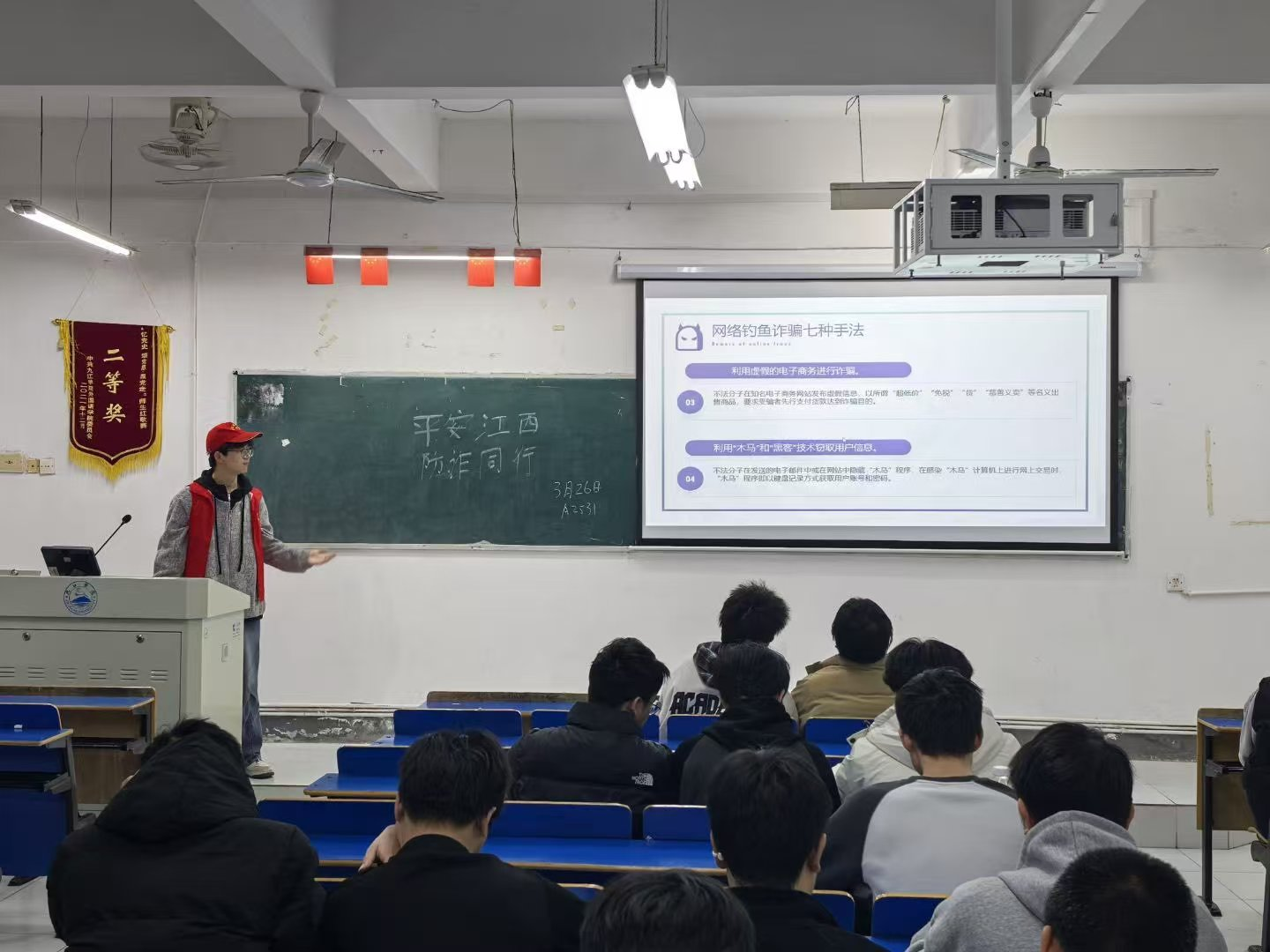 志愿者们走进课堂,结合大学生高发的刷单返利、游戏充值诈骗、冒充客服退款、校园贷等真实案例,用PPT详细拆解诈骗套路与防范要点。现场通过情景问答、案例分享等形式,让同学们认清诈骗陷阱,用通俗易懂的方式普及防诈知识,扩大宣传覆盖面。