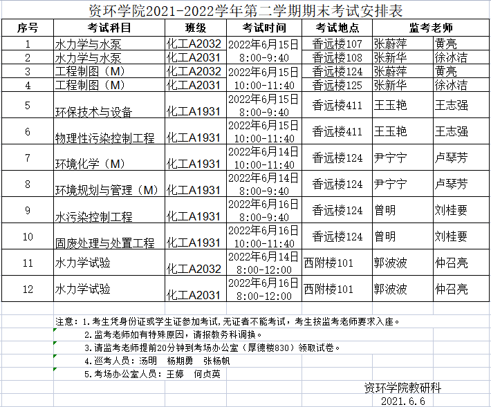 yl88858永利中国2021-2022学年第二学期期末考试安排