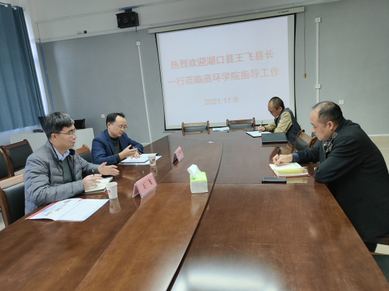 11月9日下午,湖口县副县长王飞、湖口县科技局局长周小匀一行来yl88858永利中国考察交流,并在厚德楼709会议室开展校政融合对接交流会。学院院长汤明、相关职能部门负责人及博士团队教师代表参加了对接会。会议由汤明主持。