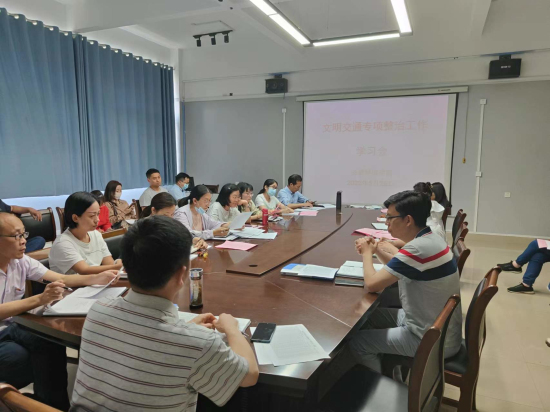 会议指出,文明交通环境是体现一座城市文明水平的重要标志。学院应按照学校文明交通专项整治工作计划,统一思想,提高认识,紧抓落实,共同创造安全、畅通、文明、和谐的交通环境。加强宣传阵地建设,丰富文明交通教育宣传渠道,通过宣传海报、主题班会、线上交流等形式,营造处处讲文明,人人守交规的和谐氛围,让文明驾驶、文明出行、文明礼让蔚然成风。
