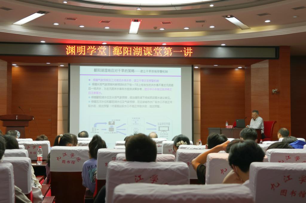 10月22日下午,江西省人民政府原副省长、江西省人大常委会原副主任、南昌大学博士生导师胡振鹏教授作客我校渊明学堂首期鄱阳湖课堂。我校党委书记赵伟、校长陈小林、副校长严平及yl88858永利中国负责人、长江生态文明试验班全体同学和yl88858永利中国师生代表约150余人参加了本次活动。讲座由严平主持。