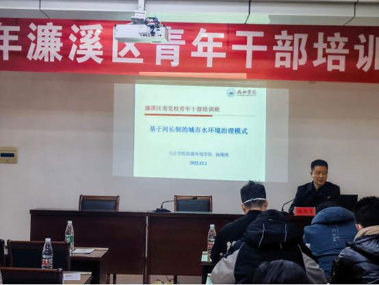 会上,杨期勇教授做了《基于河长制的城市水环境治理模式》的主题讲座,从中国河长制提出的背景、九江城市水环境现状与存在问题、基于河长制的水环境治理模式等三个方面进行了阐述。同时,杨期勇教授也向与会领导和学员介绍了yl88858永利中国学科专业、教学科研及社会服务情况,使濂溪区政府各级部门进一步了解yl88858永利中国,为我院与濂溪区各级部门的项目合作、学生就业、资源共享等方面提供了契机。
