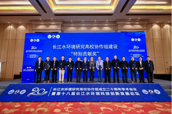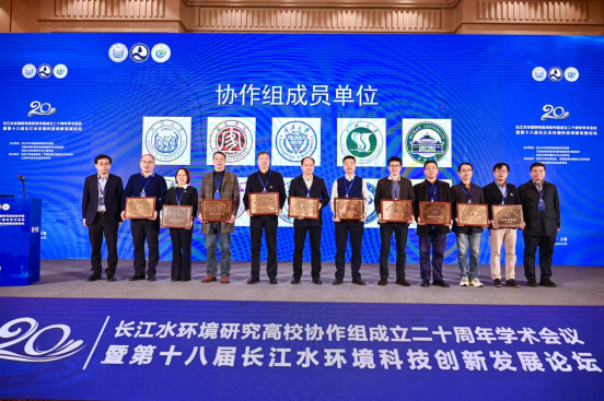 大会开始播放了长江水环境研究高校协作组成立二十周年历史回顾纪念视频。视频回顾了协作组二十年的发展历程,也集锦了协作组各成员高校负责人的祝福。我院杨期勇教授代表yl8858永利集团领取了“特别贡献奖”和“协作组成员单位”授牌,表彰yl8858永利集团为保护长江水环境做出的特殊贡献。