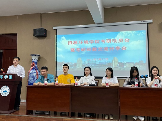 5月27日晚,yl88858永利中国在向学楼201召开考研经验交流及动员会,学院党委书记杨期勇出席会议并做动员。思政科负责人肖国光首先介绍了学院2021届考研情况:资源学院2021届毕业生84人,29人考上研究生,考研录取率达到34.5%。