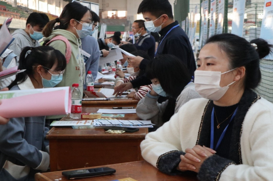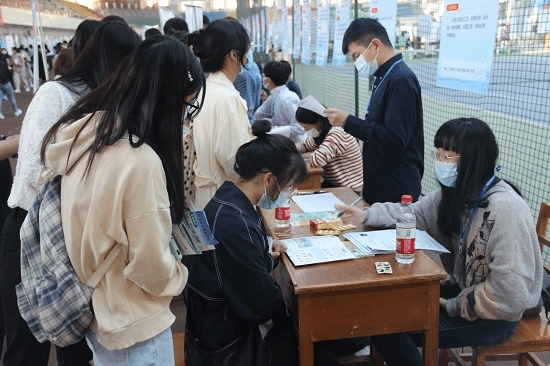 本次招聘会,用人单位首先在云就业网站进行申请,严格按照防疫防控要求,来校招聘人员提供健康承诺书,中高风险地区用人单位采取在线招聘。招聘会现场,参会员人员全程佩戴口罩,入场时“两扫一测”。