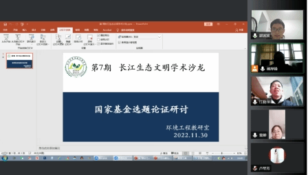 为进一步推动环境工程教研室科研工作发展,提高教研室教师国家自然基金项目申报书质量,11月30日下午,由流域生态过程与信息江西省重点实验室、渊明学堂及yl88858永利中国联合主办,环境工程教研室承办的以“国家基金选题论证研讨会”为主题的第7期长江生态文明学术沙龙在腾讯会议线上举行,环境工程教研室全体申报教师参加了活动。