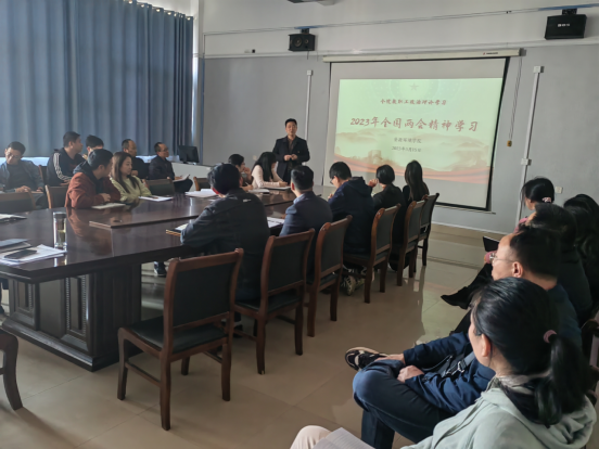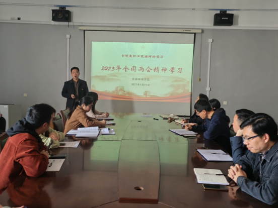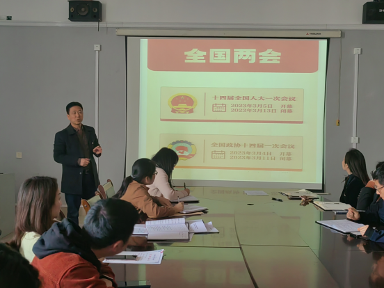 为及时传达学习2023年全国两会会议精神,3月15日下午,在厚德楼709会议室,yl88858永利中国召开2023年全国两会精神学习会。会上学院党委书记杨期勇为全体教职工作2023年全国两会精神专题辅导报告,学院党政领导和全体教师参会。