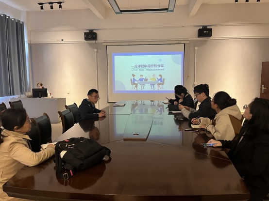 张敏首先向大家介绍了她的课程建设历程及前期的成果积累,指出要在全面梳理中总结经验、凸显亮点,提高申报书的质量。然后分别从教学内容、课程思政融入途径、教学团队、教学痛点、教学方法、教学成效等多个方面分享了申报心得体会,她特别强调,要有多年如一日的课程建设和成果积累,应注重重塑课程内容,不断更新教学理念、教学方法,在课程建设过程中,要找准课程教学的痛点,以“学生为中心”精准施策,做到“三贴近”即贴近学生、贴近生活、贴近课程,从而不断提高课程教学质量。