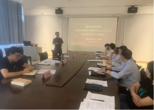 会上,党委副书记张杨帆,教工党支部书记王志强领学了《习近平著作选读》第一卷、第二卷中有关做好生态文明建设工作及大力支持民营企业发展壮大相关篇目。