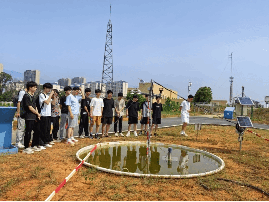 在参观室外试验场地时,工作人员分别向同学们介绍了气象观测场、水热通量观测场、湿地生态试验场、野外湿地水文生态自动观测系统等的工作原理以及工作方式,并介绍了鄱阳湖典型水位站星子站的特殊地位,并带领同学们观看了星子站的实时水位。