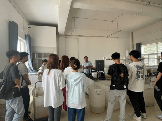 在整个实践课期间,同学们被分为两组,分别由田莉萍老师和王婷老师带队交互参观了室内实验室和室外试验场地。参观室内实验室时,刘贺老师分别带同学们参观了前处理实验室、化学实验室、生态实验室和分析仪器室等。在前处理实验室,刘老师给同学们介绍了观测站简介以及历史沿革和成员组成。在化学实验室,刘老师向同学们传达了实验室基本操作的规范和注意事项。刘老师表示安全是所有实验的第一位,同学们必须要学会先规范着装和规范操作,区分有毒有害以及易燃易爆等危险药品的分类储藏等。接着,刘老师带领同学们参观了生态实验室,并分别向同学们介绍了实验室正在进行的相关生态实验。在参观分析仪器室时,刘老师介绍了气相色谱仪、激光粒度仪、全自动化学分析仪以及显微镜等仪器的功能、测试指标以及操作方法等。